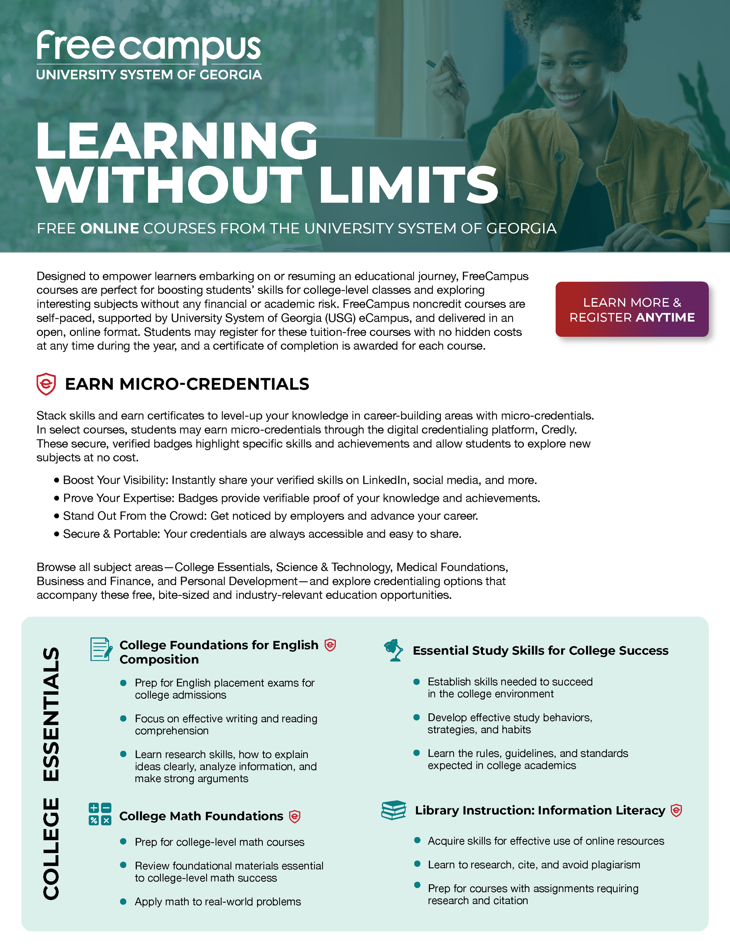I worked with the web team to align the aesthetics of the planned website, with the existing FreeCampus print material. After adjusting the Figma file, shown above, to reflect the print pieces I had previously designed, the final website reflects a cohesive representation of the current branding for the USG FreeCampus initiative.